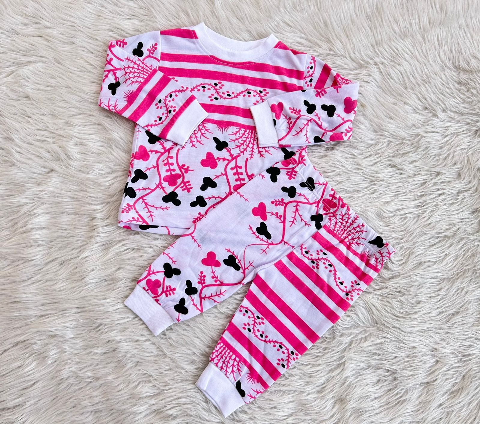 ( 9 to 12 months ) Pink with Black flower Print pyjama
