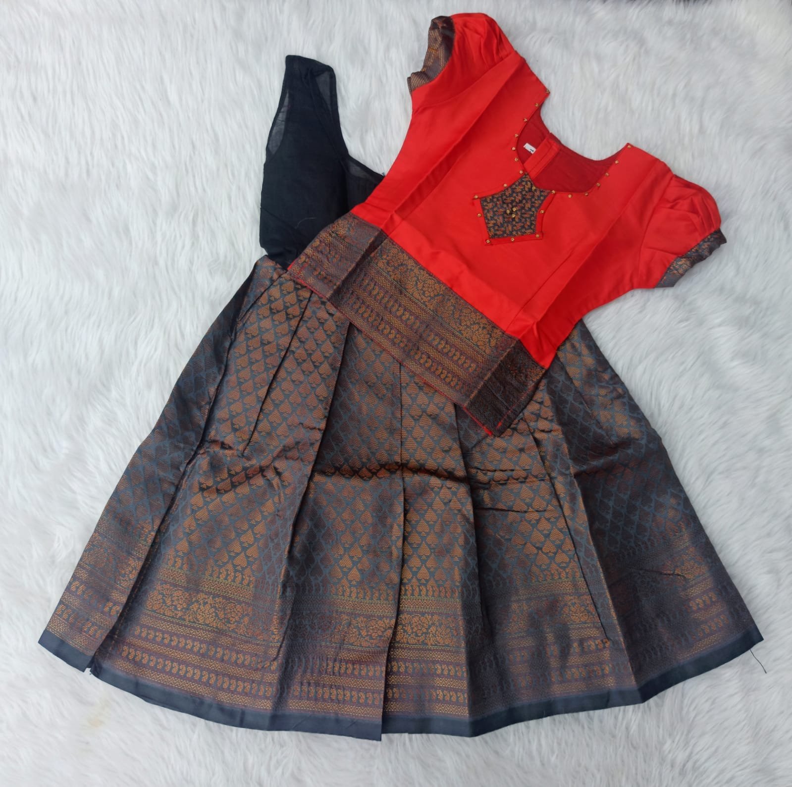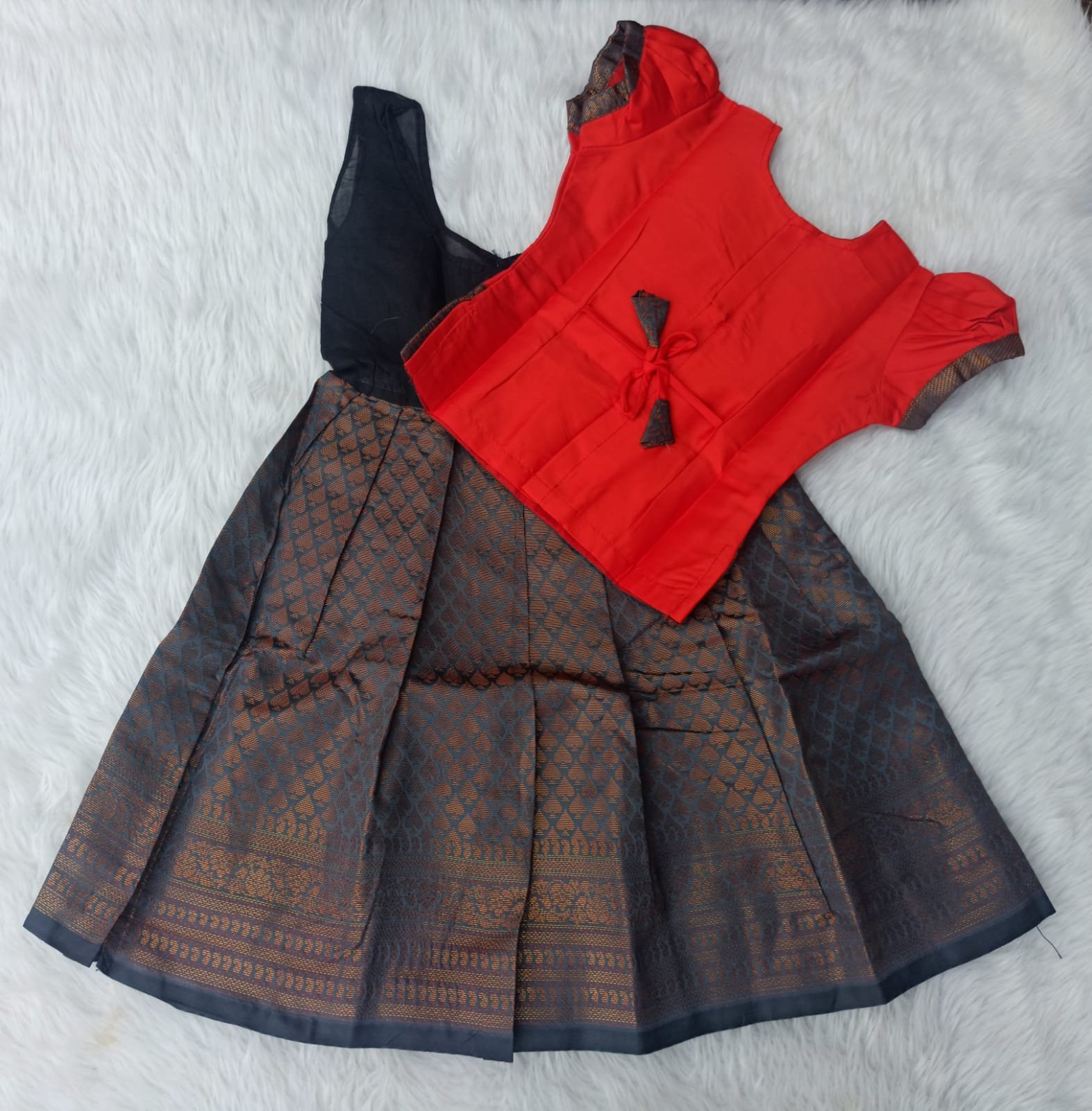 Red with Grey Pattu pavadai ( 12 to 18 months )